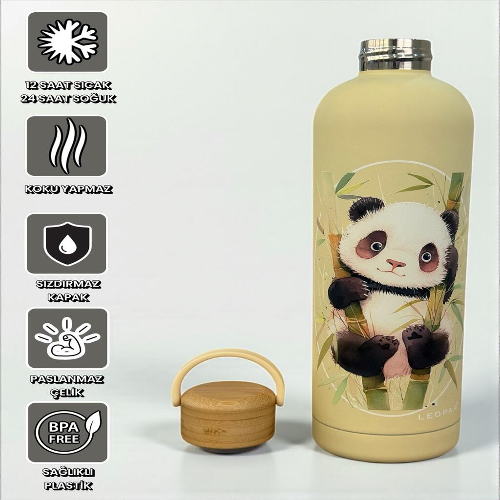 Etiketler | Bambu Kapaklı Krem Renk Panda Figürlü 1000 ml Paslanmaz Çelik Termos |