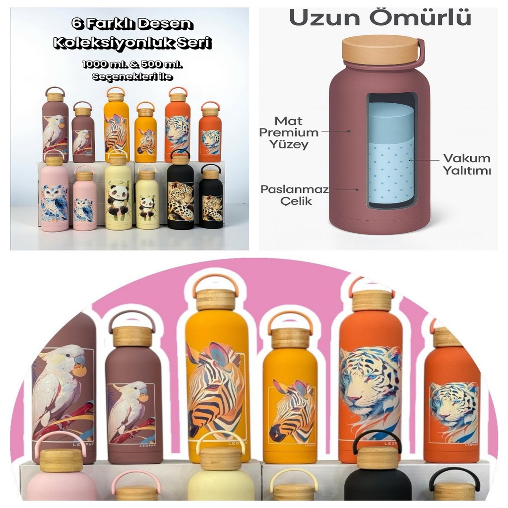 Etiketler | Bambu Kapaklı Pembe Renk Papağan Figürlü 1000 ml Paslanmaz Çelik Termos |