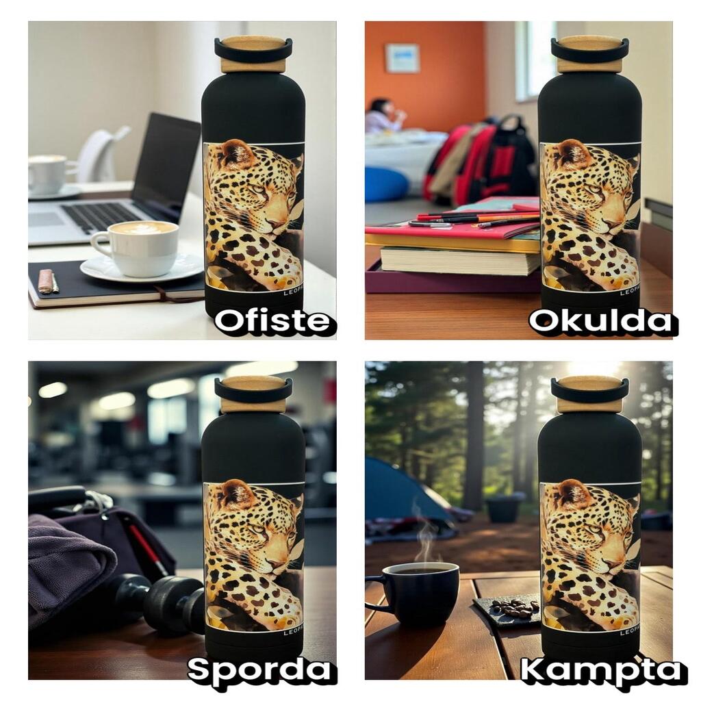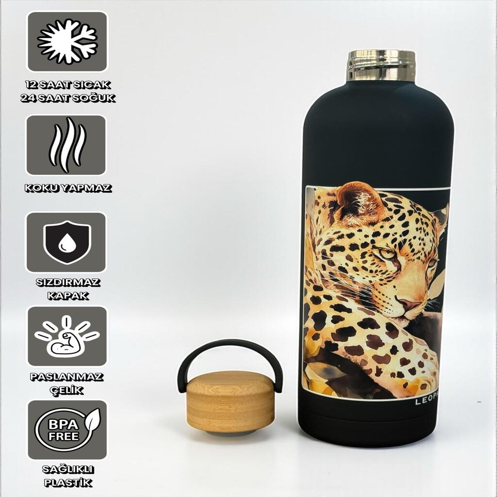 Etiketler | Bambu Kapaklı Siyah Renk Leopar Figürlü 500 ml Paslanmaz Çelik Termos |