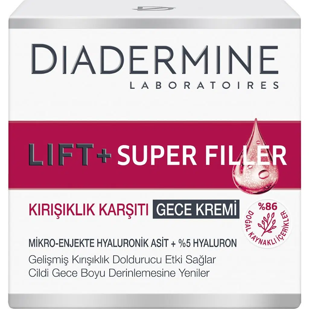 Diadermine Lift+Superfiller Gece Yüz Kremi 50 Ml n*.Pro-Kolajen İçerir n*.Güçlü Formülü Uzun Süreli Sıkılaştırıcı Etki .n*Hyaluronik Asit Enjeksiyonu Küçük Damlalarla Cildinize Nüfuz Edern* ları Doldurucu Etki Yapar. n*Cildi Yeniler, Doldurur Ve Pürüzsüzleştirir.