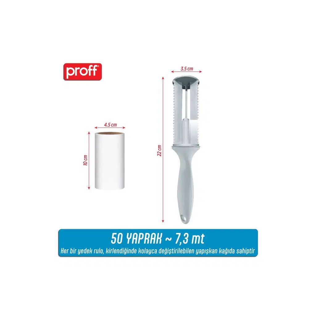 Proff Tüy Toplayıcı 12 Li Yedek Rulo + Aparat Proff Tüy Toplayıcı yedek rulo kirlendiğinde kolayca değiştirilebilen 50 yaprak yapışkan kağıda sahip olup 12 yedek rulo içerir